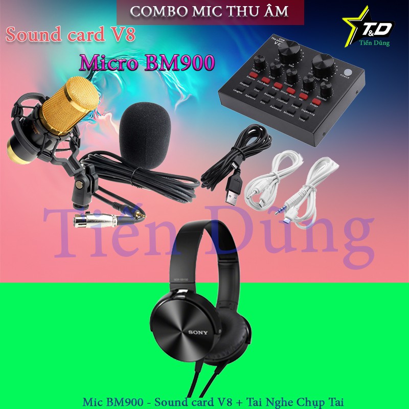 BỘ MIC THU ÂM BM900 SOUND CARD V8 TAI NGHE Bản v8 tiếng anh- combo mic livetream bm900 sound card v8 với tai nghe chụp tai.👉LƯU Ý : Shop có phân loại sản phẩm , Khách hàng mua sản phẩm như ảnh phân loại.