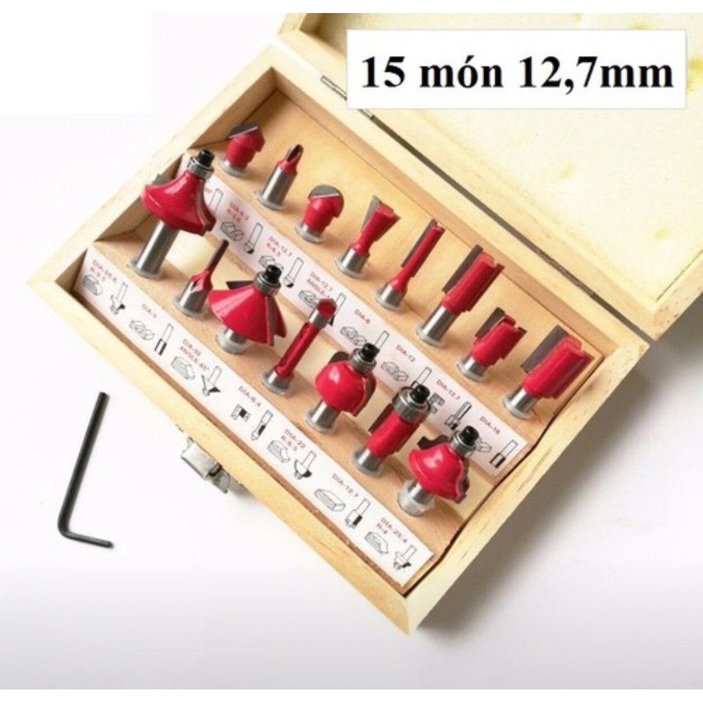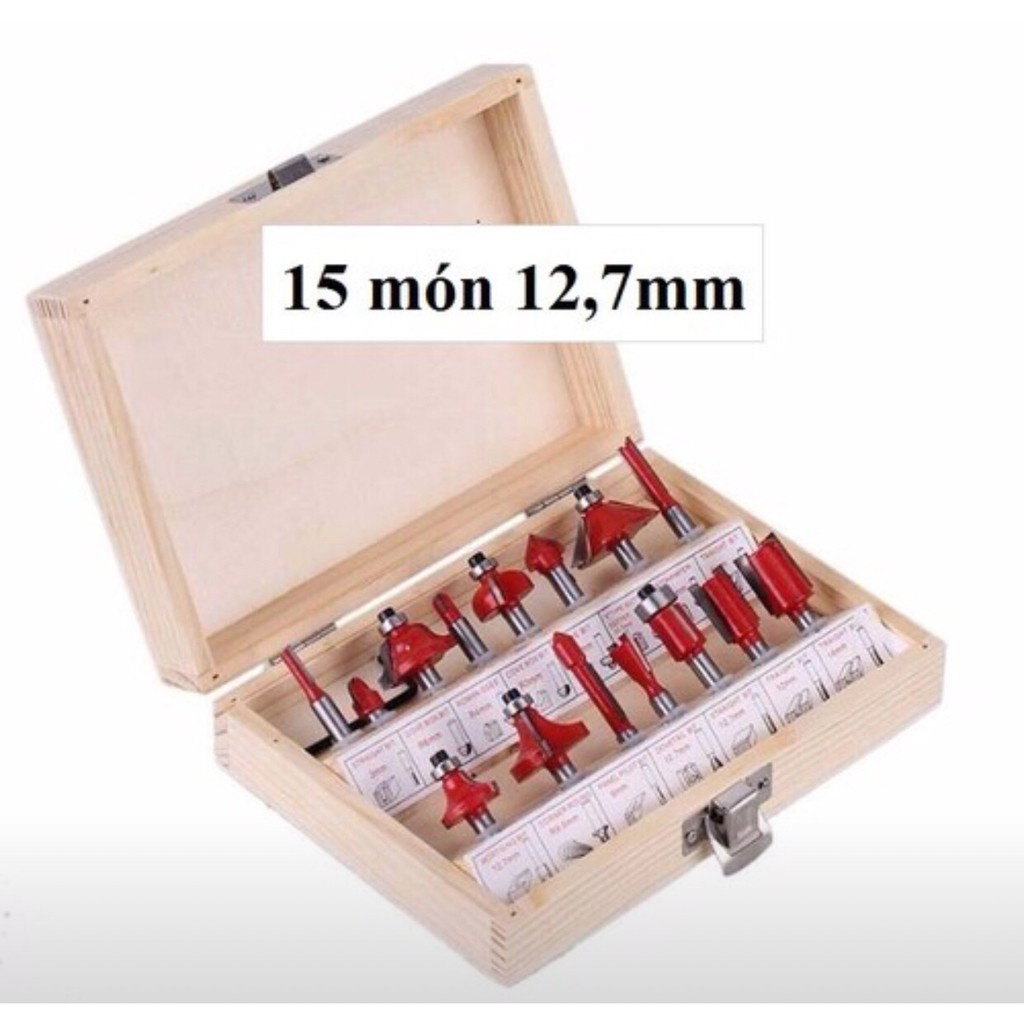 BỘ MŨI PHAY GỖ 15 MŨI 12,7mm