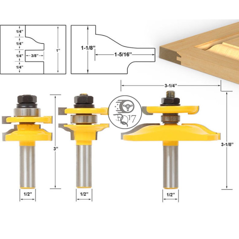 Giới thiệu [ BỘ MŨI PHAY GỖ GHÉP VÁN ] 100% NHƯ HÌNH - MŨI SOI LÀM CÁNH CỬA TỦ BẾP 3 MÓN