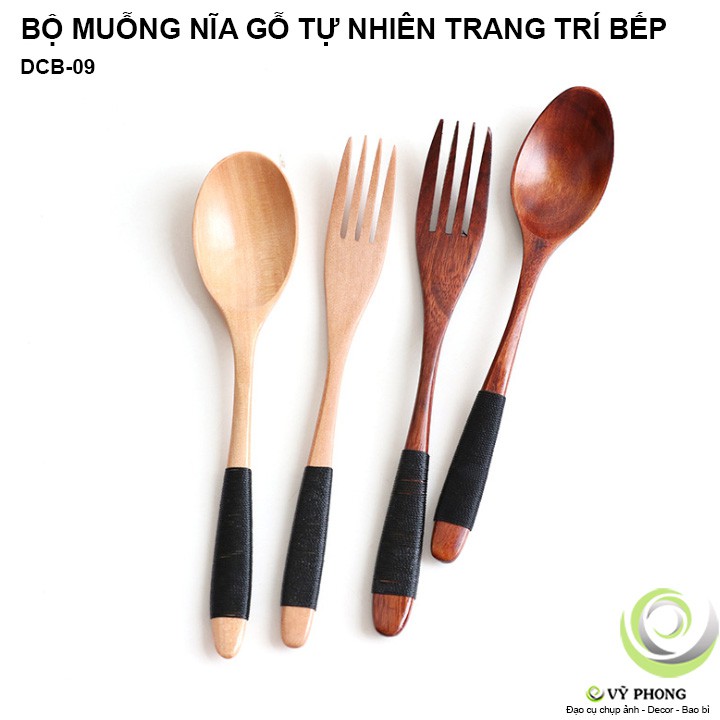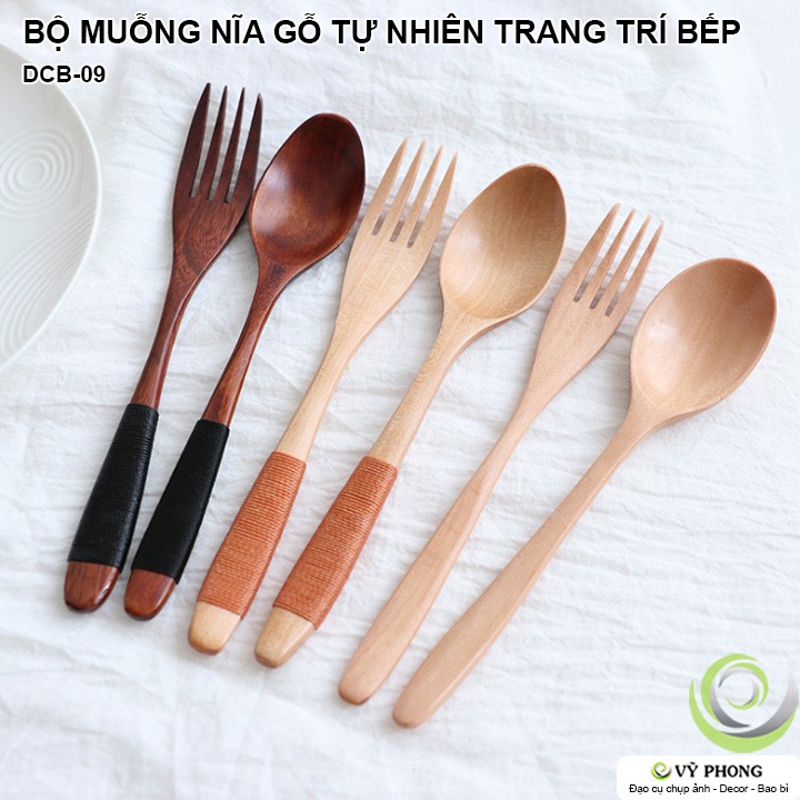 BỘ MUỖNG NĨA GỖ TỰ NHIÊN PHONG CÁCH NHẬT TRANG TRÍ BẾP ĐẠO CỤ CHỤP ẢNH SẢN PHẨM INS DCB-09