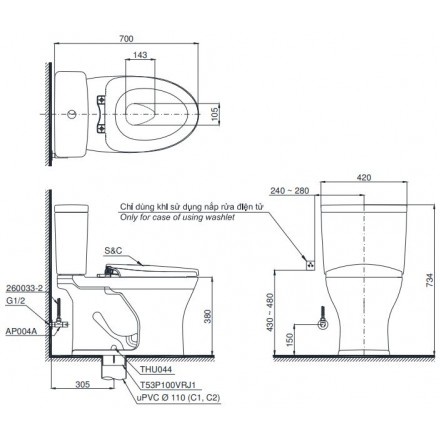 Phù hợp lắp đặt với nắp rửa điện tử WASHLET (tùy chọn)