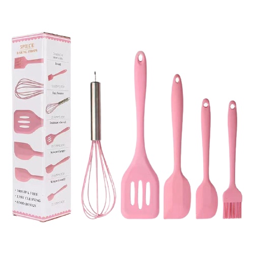 Bộ nấu ăn làm bánh dụng cụ nhà bếp, nấu ăn làm bánh silicon 5 món chịu nhiệt gồm chổi, spatula đánh trứng, xẻng caoBộ sản phẩm gồm 5 món: