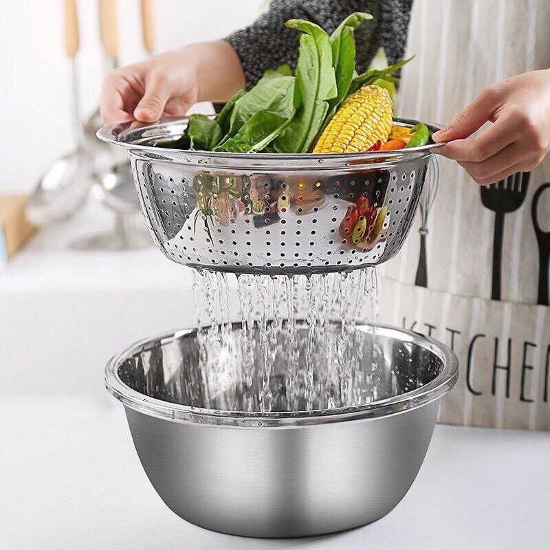 BỘ NẠO INOX 304, bộ nạo rau củ quả ,bộ rổ inox 3 chức năng kèm nạo rau củ tiện dụng