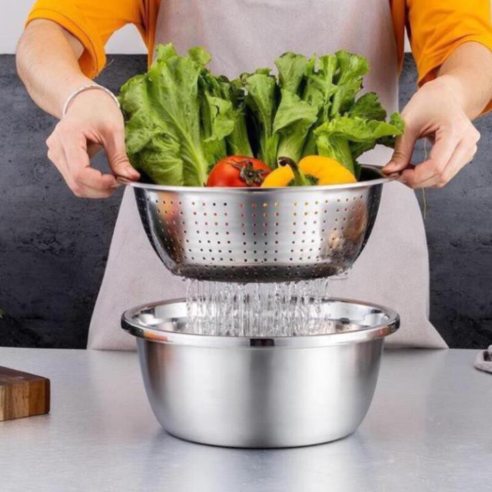 Nhà cửa & Đời sống > Dụng cụ nhà bếp > Bàn nạo, dụng cụ bào, cắt || BỘ NẠO INOX 304,bộ rổ inox kèm nạo rau củ tiện dụngCòn hàng