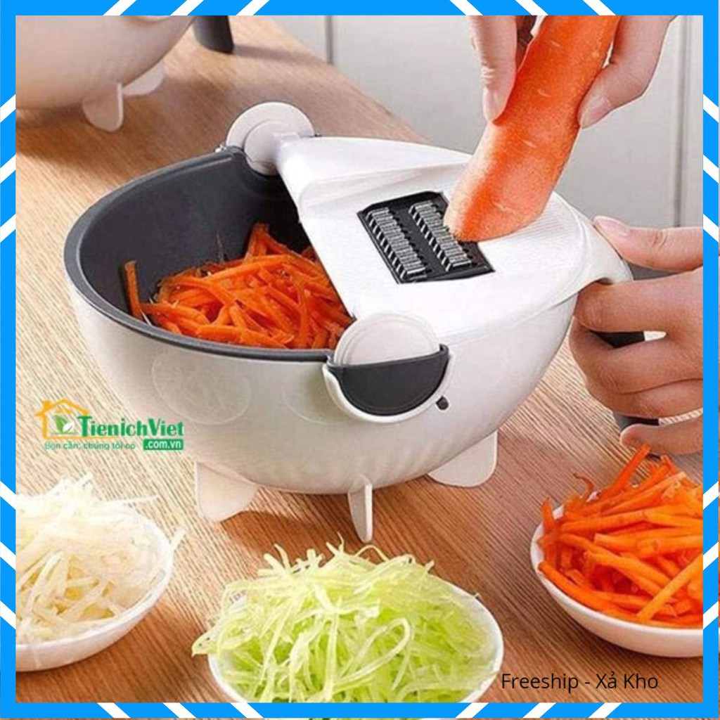 Bộ Dụng Cụ Thông Minh Nạo Rau - Củ - Quả Kèm Rổ 9 Trong 1 Đa Năng- Bộ Dụng Cụ Thông Minh Nạo Rau - Củ - Quả Kèm Rổ 9 Trong 1 Đa Năng thiết kế thông minh, nhỏ gọn và nhiều chức năng với cấu tạo gồm: lưỡi gọt (nạo) vỏ củ quả (củ khoai tây, bầu, bí, cà rốt, mướp, susu…); lưỡi bào (cắt) củ quả thành sợt nhỏ (Bào cà rốt, đu đủ, dừa…); rổ hứng rửa xoay 360 độ không lo bị rơi ra ngoài… giúp việc chế biến các món ăn thật đơn giản và dễ dàng và đẹp mắt.