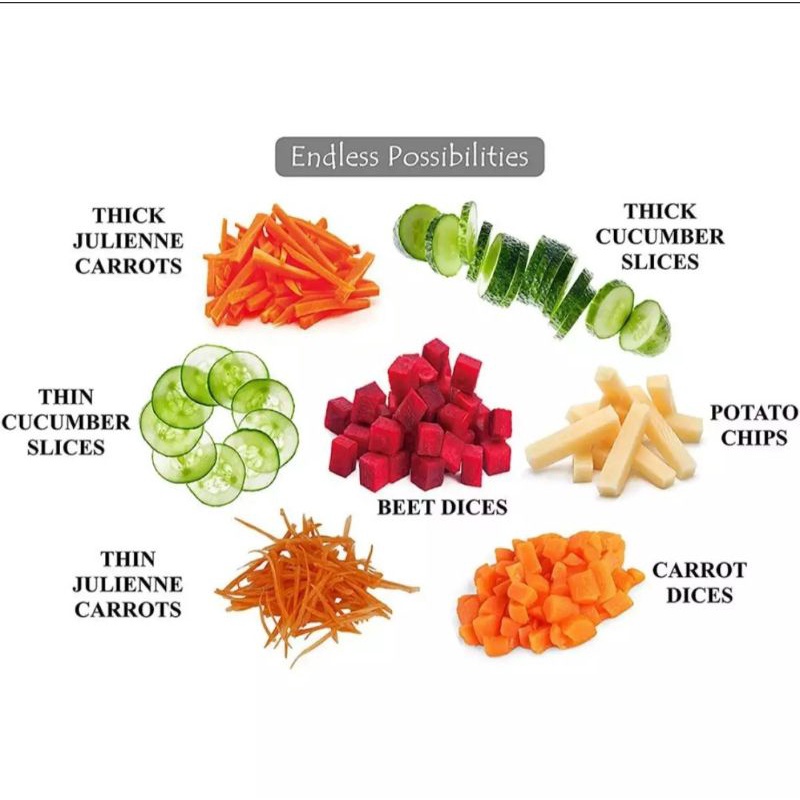 🍁Các bạn có thể dùng máy để cắt lát hay bào sợi rất nhiều loại củ quả như: dưa leo, cà rốt, su su, khoai tây, đu đủ…
