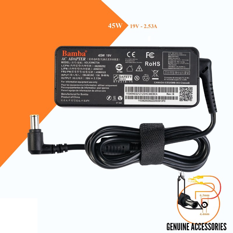 Adapter dùng cho các dòng màn hình LG có công suất 45WĐầu tròn có kim ở giữa, kích thước 6.3mm*4.4mm