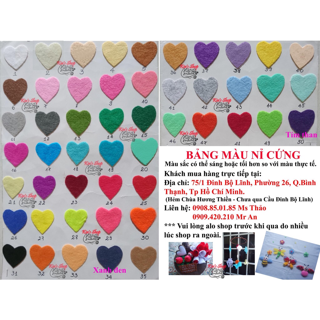 ::: Vải nỉ cứng màu sắc đa dạng, dễ thao tác, may thêu xinh động.