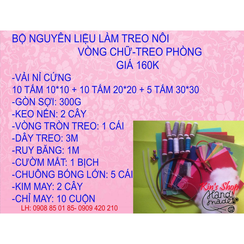Sở thích & Sưu tầm > Dụng Cụ May Vá || BỘ NGUYÊN LIỆU GỒM VẢI NỈ VÀ PHỤ KIỆN LÀM TREO NÔI CHO BÉ- VÒNG CHỮ TREO PHÒNG XINH XẮNCòn hàng