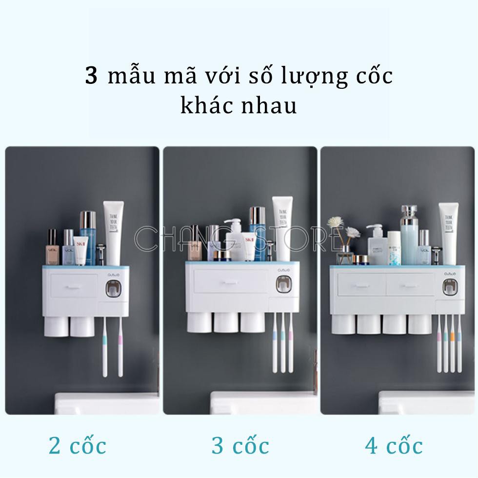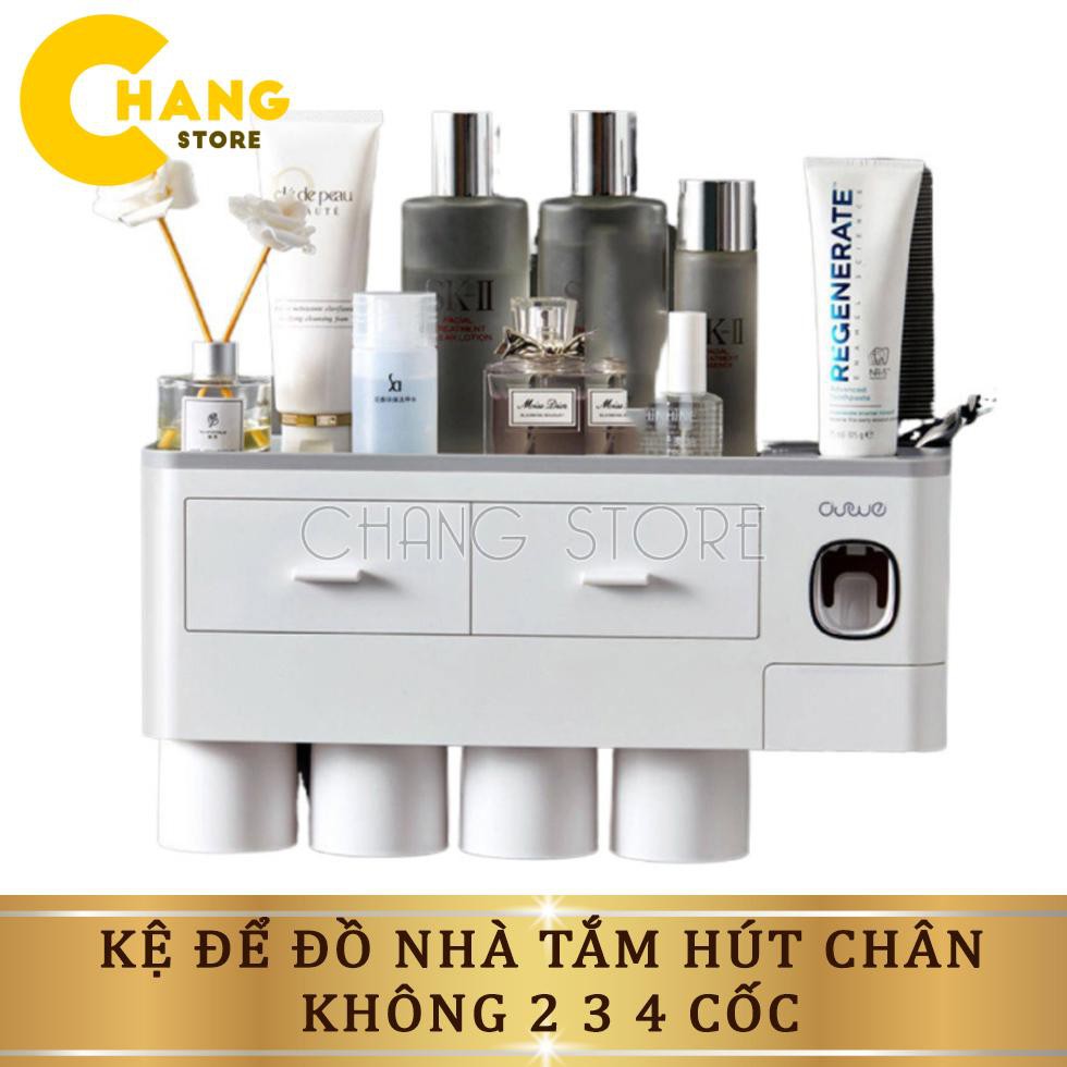 Bộ nhả kem đánh răng tự động cao cấp phân loại 2, 3, 4 cốc, Kệ để đồ nhà tắm hút chân không chắc chắn