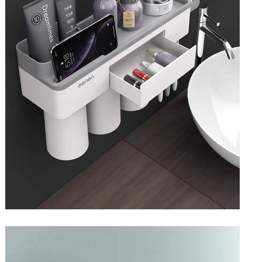 - Bộ nhả kem đánh răng gồm: 1 Kệ nhà tắm tích hợp chức năng lấy kem tự động + Cốc hút từ tính + miếng dán tường