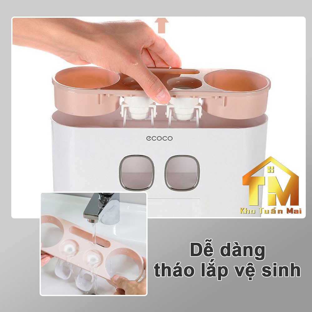BỘ NHẢ KEM ĐÁNH RĂNG 💎SALE💎 TỰ ĐỘNG ECOCO DỤNG CỤ NHÀ TẮM KỆ TREO BÀN CHẢI ĐÁNH RĂNG CAO CẤP 4 CỐC NAM CHÂM