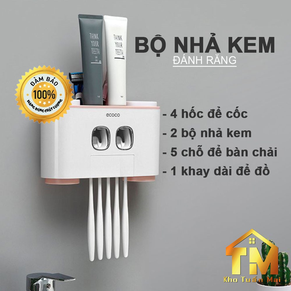 Giới thiệu BỘ NHẢ KEM ĐÁNH RĂNG SALE TỰ ĐỘNG ECOCO DỤNG CỤ NHÀ TẮM KỆ TREO BÀN CHẢI ĐÁNH RĂNG CAO CẤP 4 CỐC NAM CHÂM