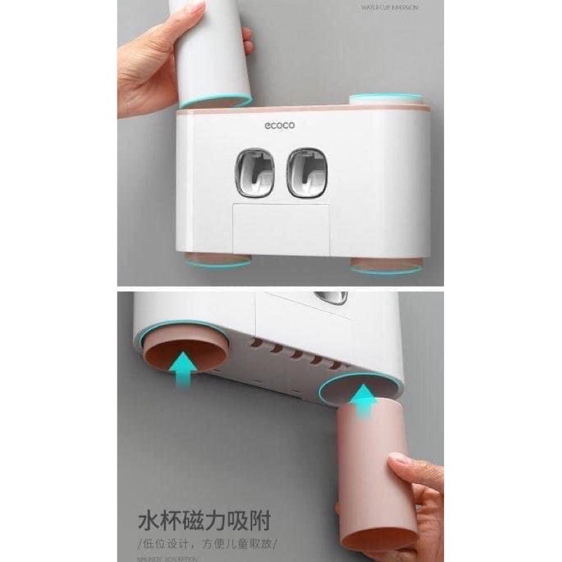 BỘ NHẢ KEM ECOCO- HỘP ĐỰNG BÀN CHẢI NHẢ KEM TREO TƯỜNG