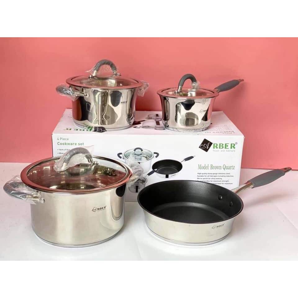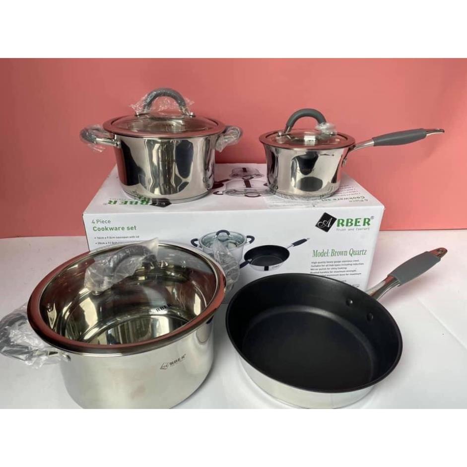 BỘ NỒI CHẢO CAO CẤP 4 MÓN ARBER BROWN 3 ĐÁY HÀNG CHÍNH HÃNG ĐỨC
