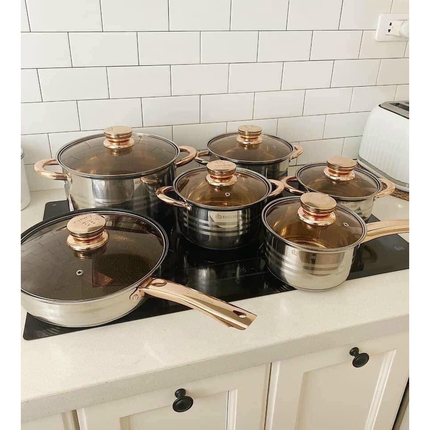 Bộ nồi Đức 6 món 12 chi tiết - Dùng cho mọi loại bếp điện, bếp từ, bếp ga - 1 đổi 1 trong 30 ngày - Bảo hành 12 tháng