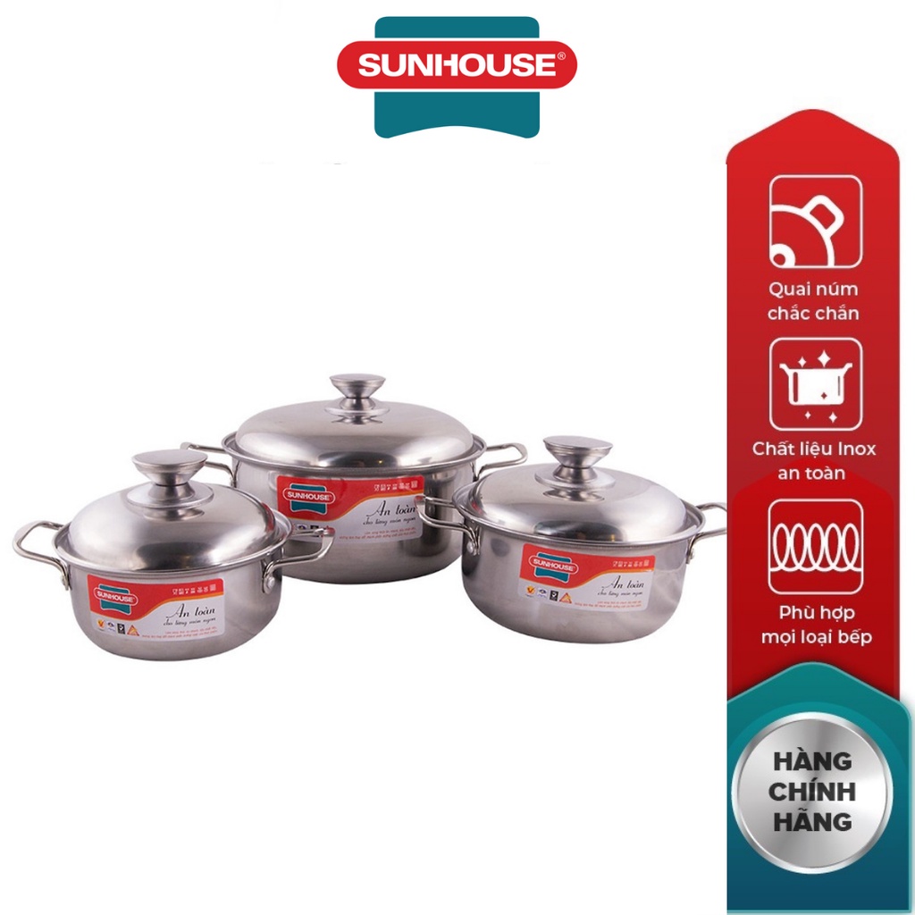 Bộ Nồi Inox 1 Đáy Sunhouse SH224