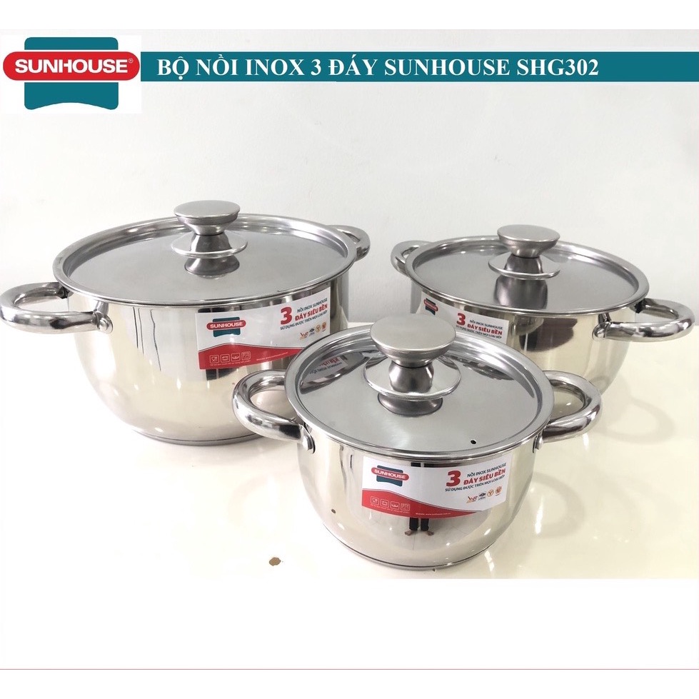 Bộ Nồi Inox 3 Đáy Sunhouse Nắp Inox SHG302