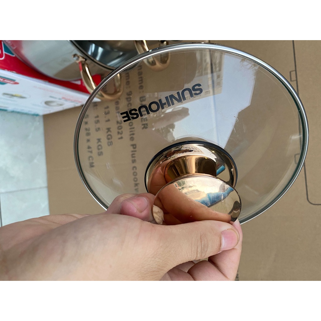 Với quai núm được chế tạo từ inox, mạ vàng cao cấp, bộ nồi inox SUNHOUSE SH781