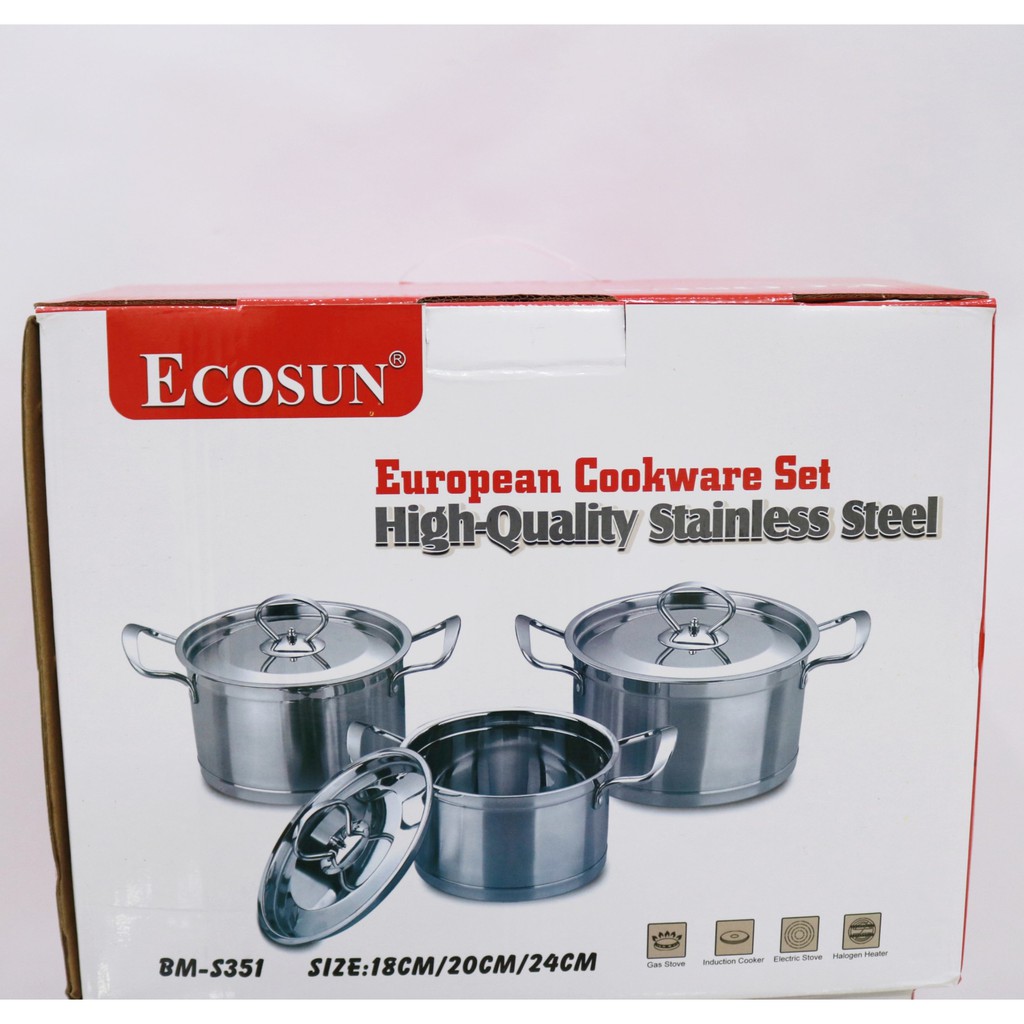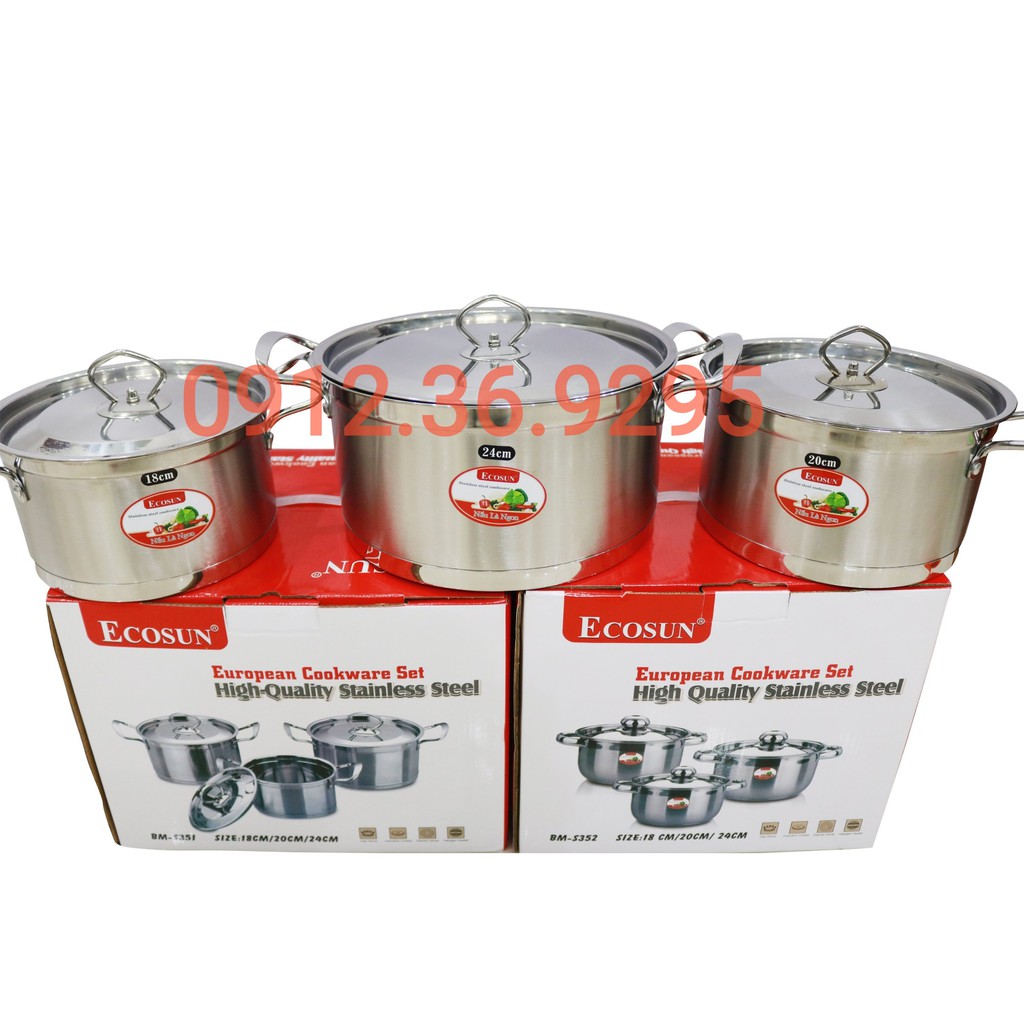 ❤️ BỘ NỒI INOX 3 ĐÁY CAO CẤP ECOSUN BMS351❤️SẢN PHẨM CHÍNH HÃNG ECOSUN