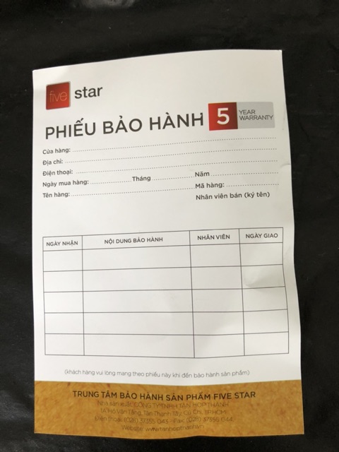 Bảo hành 5 năm của nhà sản xuất.