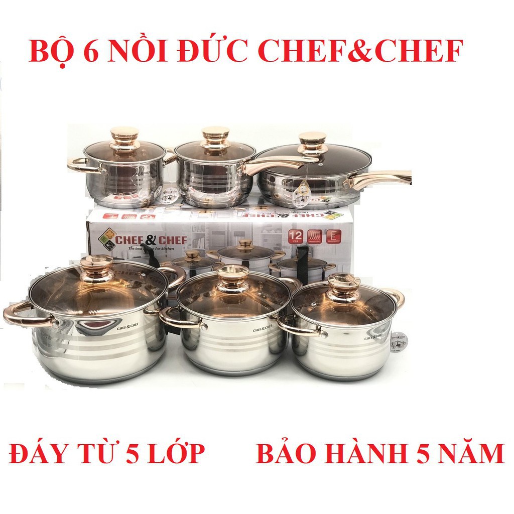 [SẢN PHẨM] 🔴 BỘ NỒI CHEF&CHEF SET 6 MÓN -12 CHI TIẾT CÓ VUNG KÍNH---------- SIÊU ĐỈNHBộ nồi CHEF&CHEF 6 món 12 chi tiết nhập khẩu từ Đức