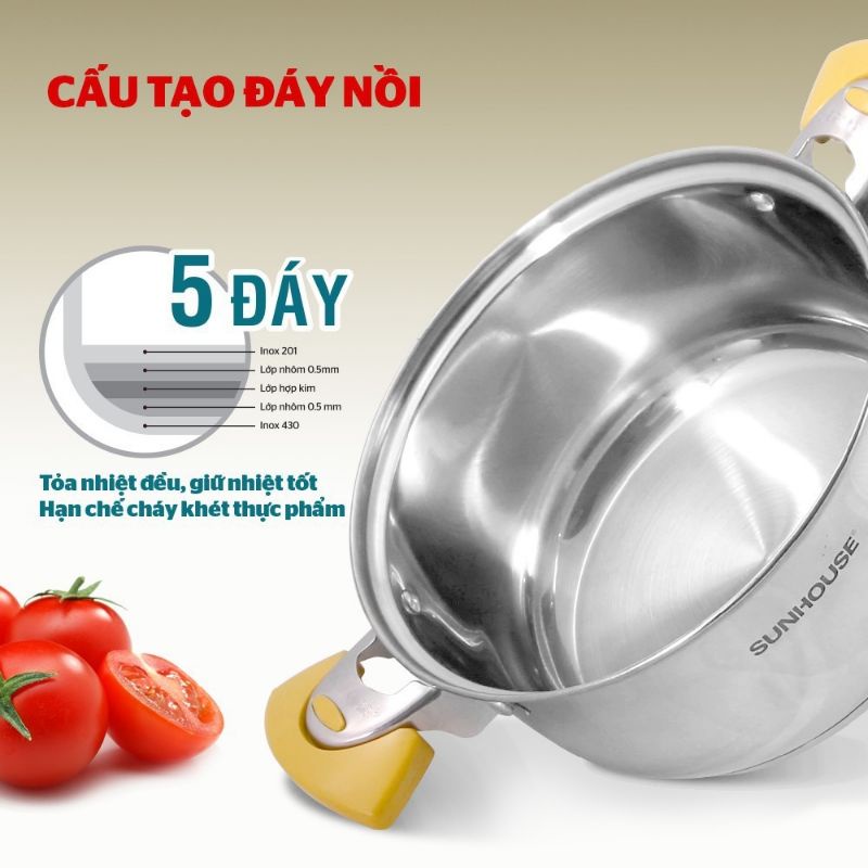 Thiết Bị Điện Gia Dụng > Đồ gia dụng nhà bếp > Nồi áp suất || BỘ NỒI 5 LÓP SUNHOUSE Mode 787Còn hàng