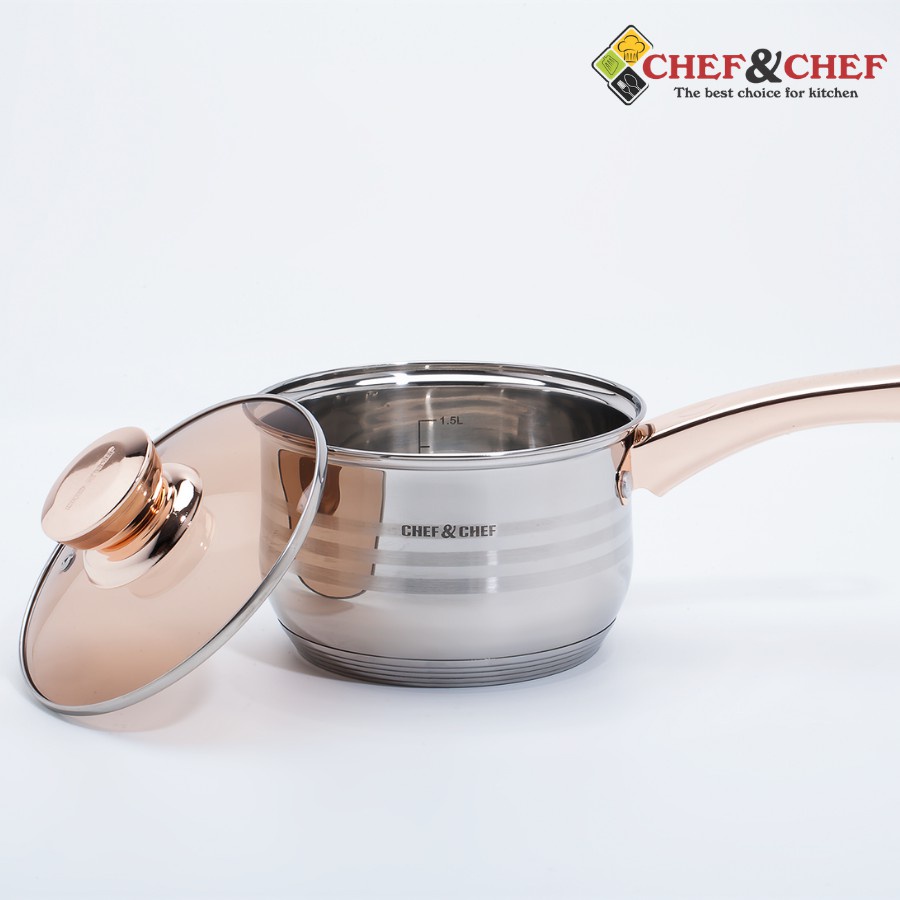 BỘ NỒI 6 MÓN VUNG KÍNH CHEF&CHEF ĐÁY TỪ 5 LỚP SẢN XUẤT THEO DÂY CHUYỀN CÔNG NGHỆ ĐỨC