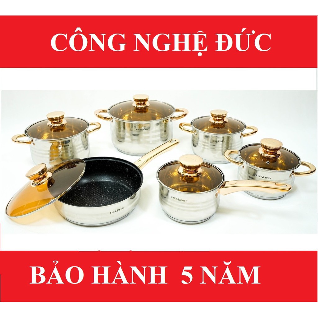 Bộ nồi CHEF & CHEF 6 món 12 chi tiết công nghệ sản xuất nhập khẩu từ Đức 💯