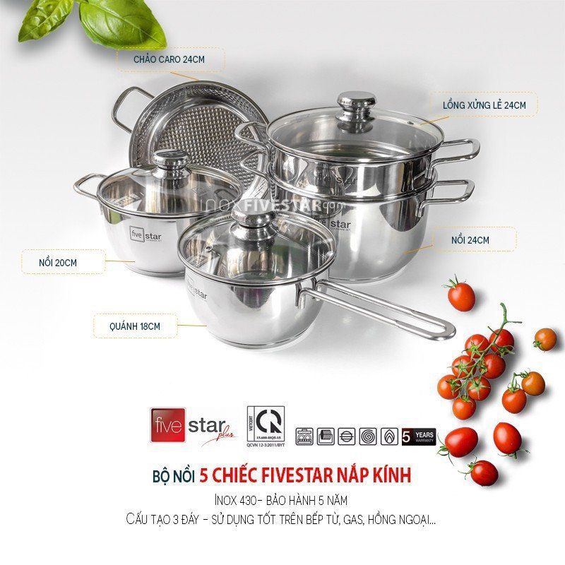 Nhà cửa & Đời sống > Dụng cụ nhà bếp > Nồi || Bộ Nồi 8 món FIVE STAR inox 430 Bảo Hành 5 Năm Chính HãngCòn hàng