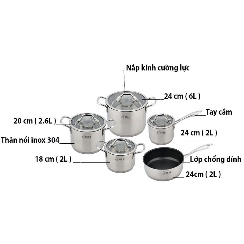 BỘ NỒI ARBER AB 05PLUS - Chính hãng bảo hành vung kính trọn đời