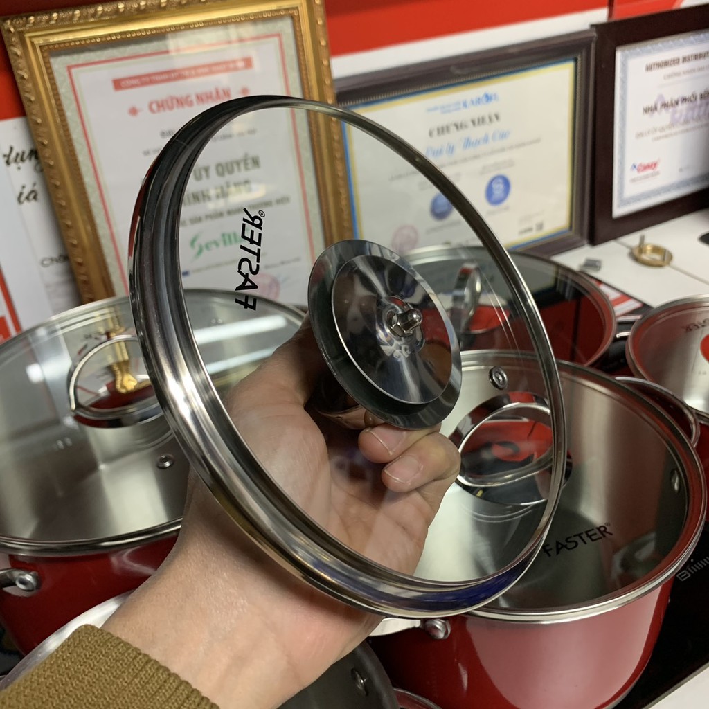 Bộ đáy nồi bắt từ cực nhạy, đáy phẳng có thông tin cơ bản về chất liệu và công ty Faster Việt Nam