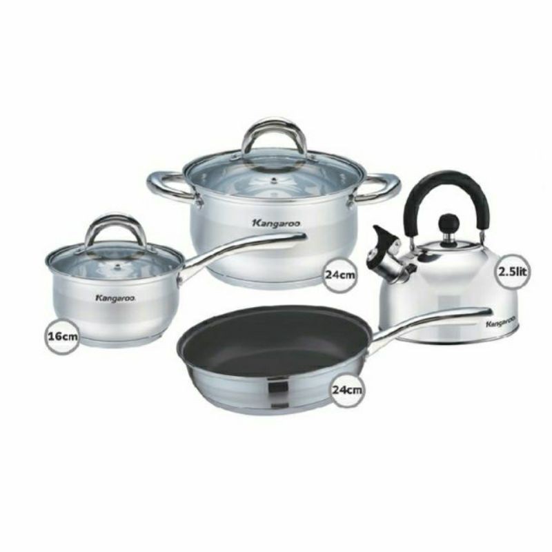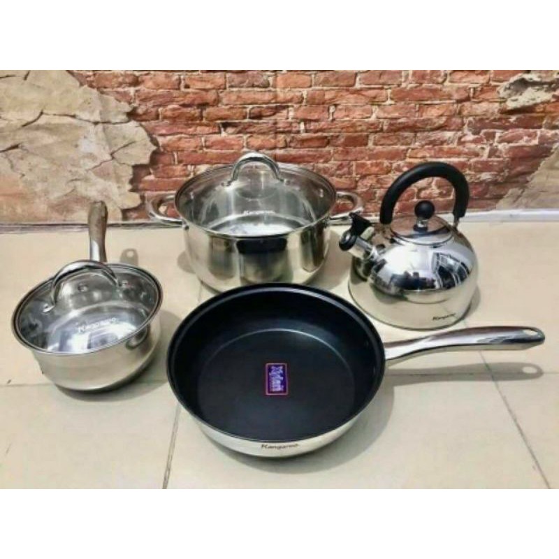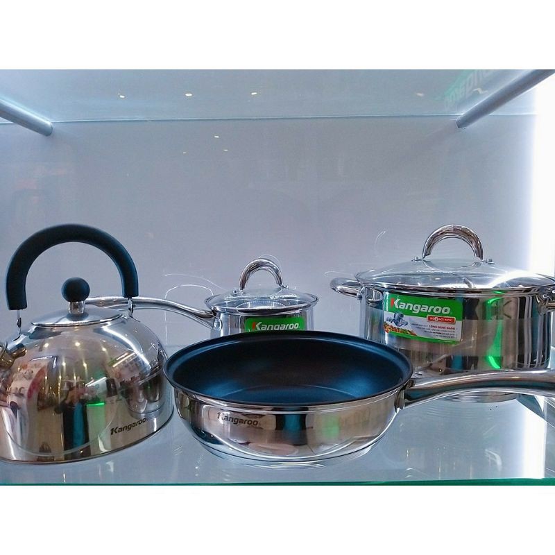 Nhà cửa & Đời sống > Dụng cụ nhà bếp > Chảo || BỘ NỒI CHẢO ẤM INOX KG 998M ( Dùng được trên bếp từ )Còn hàng