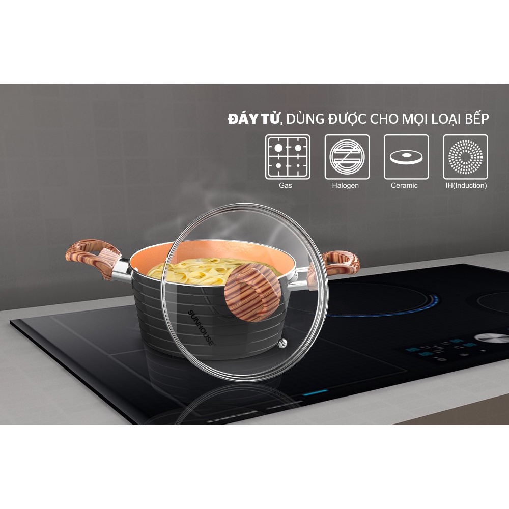 BỘ NỒI CHẢO CHỐNG DÍNH CERAMIC ĐÁY TỪ SUNHOUSE SHG2004MCA (TẶNG 10 KHẨU TRANG 4D)