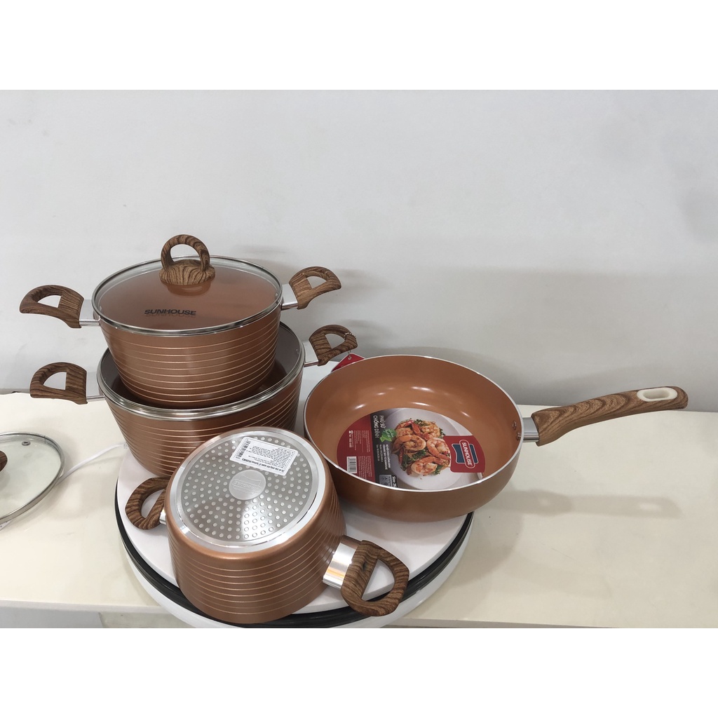 Nhà cửa & Đời sống > Dụng cụ nhà bếp > Chảo || BỘ NỒI CHẢO CHỐNG DÍNH ĐÁY TỪ SUNHOUSE SHG2004MCACòn hàng