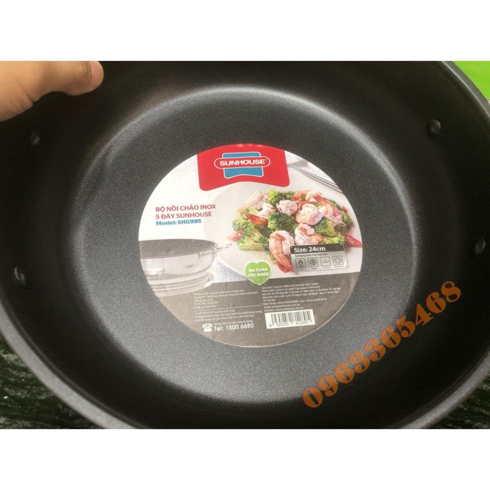Giới thiệu BỘ NỒI CHẢO INOX 5 ĐÁY SUNHOUSE SHG995