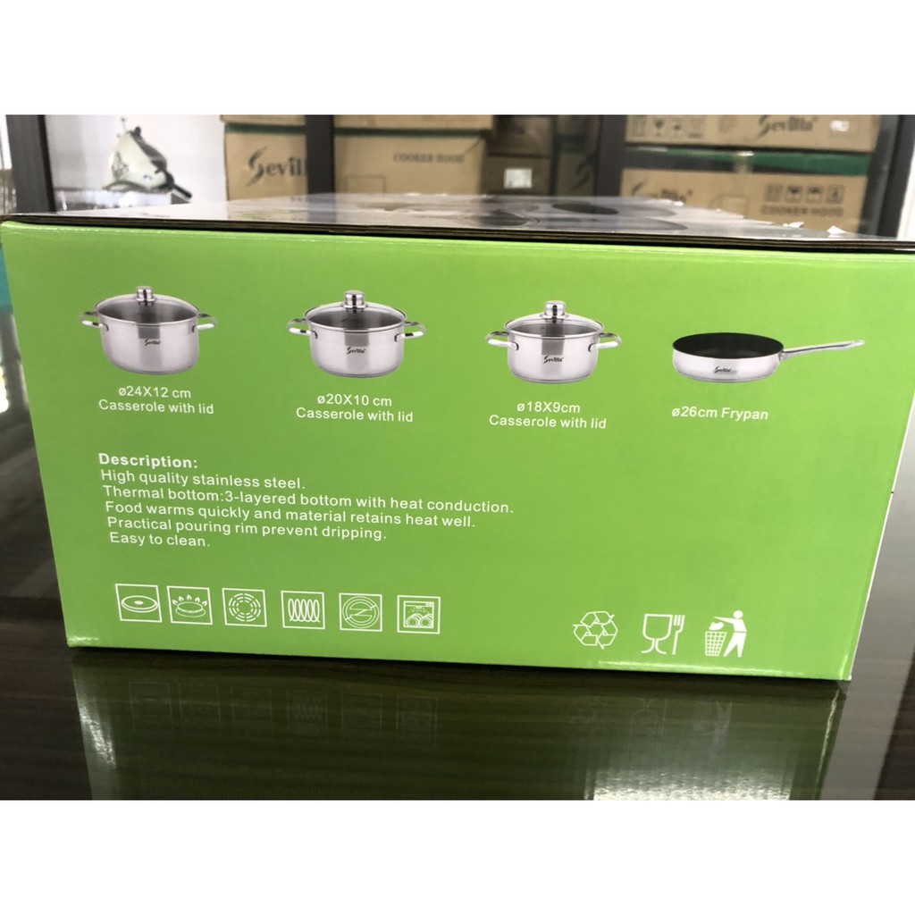 BỘ NỒI CHẢO TỪ CAO CẤP SEVILLA SV-LX04 KIỂU DÁNG CHÂU ÂU SANG TRỌNG, AN TOÀN VÀ BỀN BỈ KHI SỬ DỤNGBộ nồi từ 4 chiếc cao cấp Sevilla SV-LX04 làm bằng chất liệu inox 304, thiết kế đáy 3 lớp siêu bền khi sử dụng. Bộ nồi tiếp xúc nhiệt nhanh, tản nhiệt đều khi nấu, đang được bán với giá tốt nhất tại Điện máy azdeal.vn
