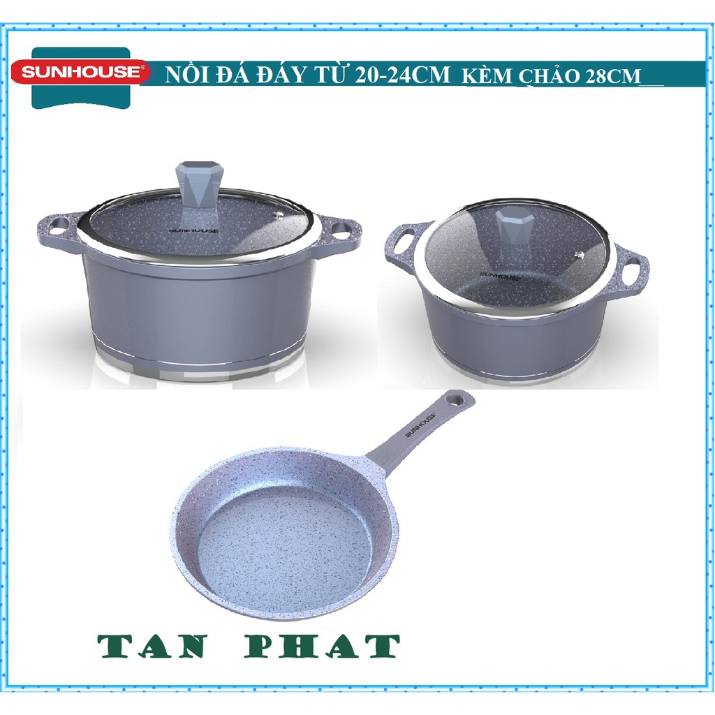 Nhà cửa & Đời sống > Dụng cụ nhà bếp > Chảo || BỘ NỒI CHẢO VÂN ĐÁ ĐÁY TỪ SUNHOUSE (2 nồi + chảo 26cm)Còn hàng