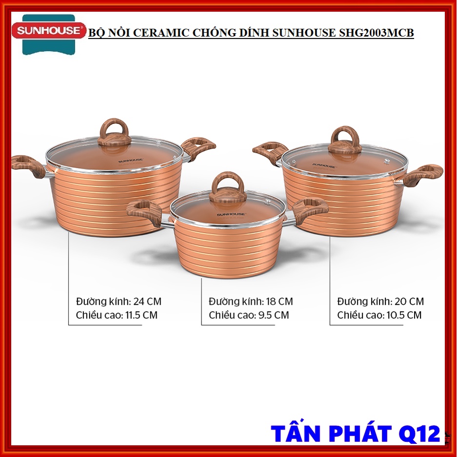 BỘ NỒI CHỐNG DÍNH CERAMIC ĐÁY TỪ SUNHOUSE SHG2003MCB