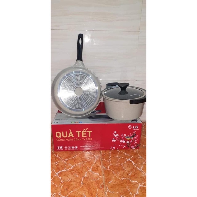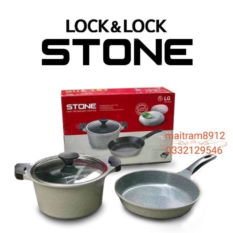 🍳Bộ nồi đá stone 24cm và chảo đá 7 lớp stone 28cm lock n lock