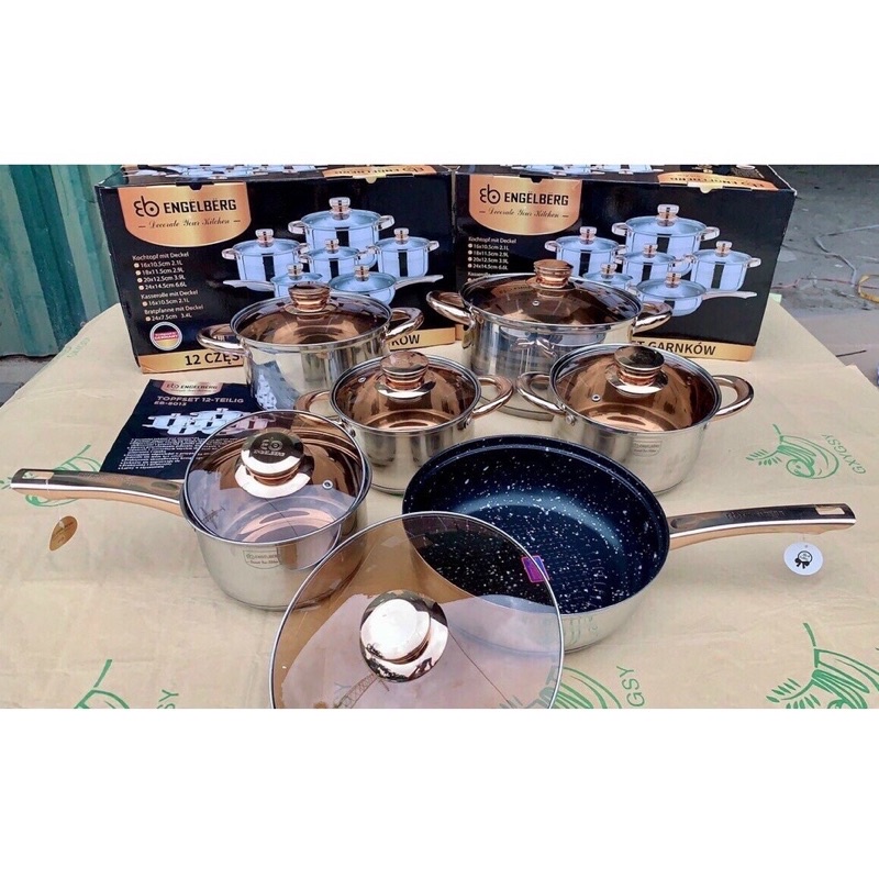 Nhà cửa & Đời sống > Dụng cụ nhà bếp > Nồi || BỘ NỒI ĐỨC 5 + 9 LỚP 6 MÓN 12 CHI TIẾT ENGELBERGCòn hàng