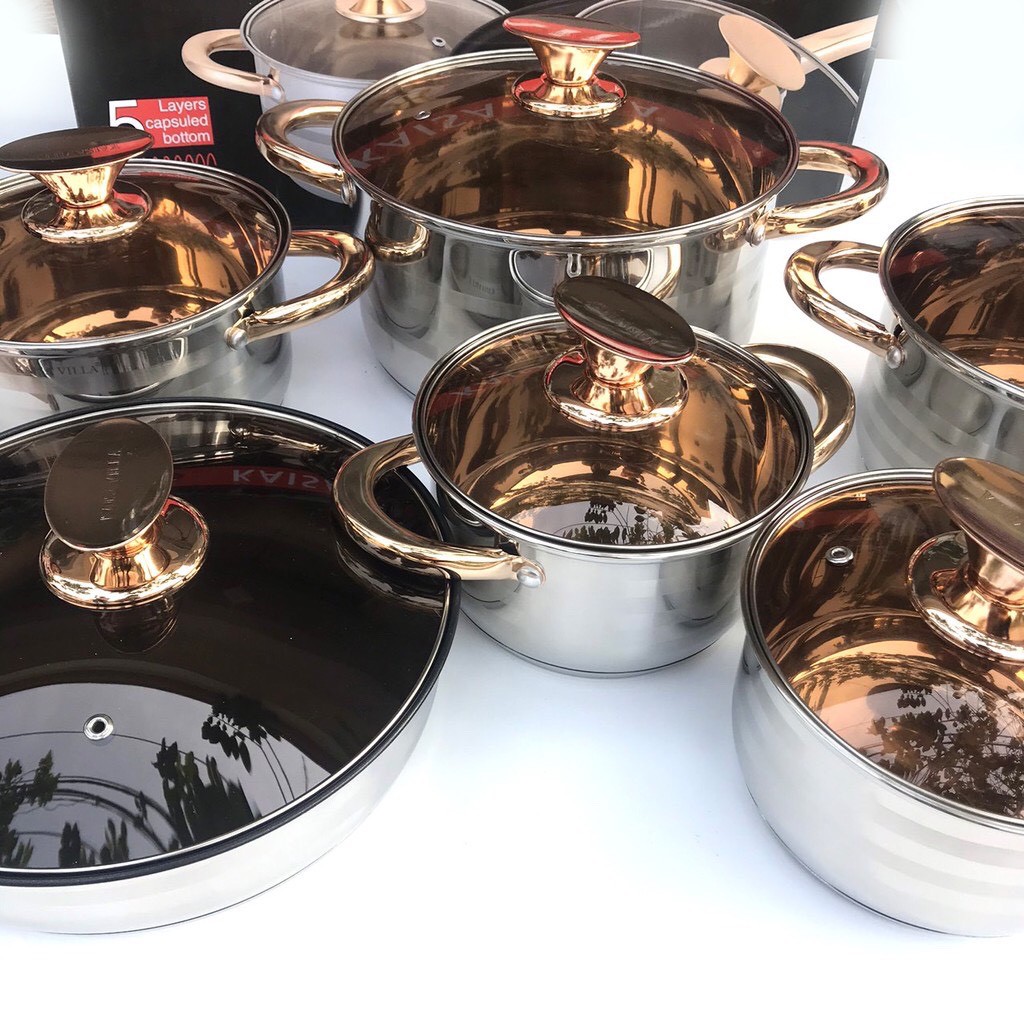 Nhà cửa & Đời sống > Dụng cụ nhà bếp > Nồi || BỘ NỒI ĐỨC KAISA VILLA KV-6618 ĐÁY TỪ 9 LỚP 6 MÓN 12 CHI TIẾTCòn hàng