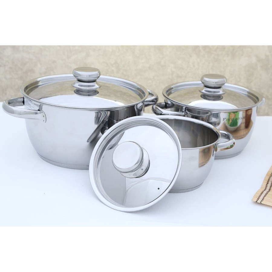 💦💦Bộ 3 Nồi Inox FiveStar cấu tạo đáy 3 lớp là 1 sản phẩm của thương hiệu FiveStar, sản xuất tại Việt Nam dựa trên dây chuyền và công nghệ hiện đại của Hàn Quốc. Bộ nồi gồm 3 chiếc với kích thước khác nhau, được làm từ chất liệu inox cao cấp, cấu tạo đáy 3 lớp , có thể sử dụng được trên bếp từ, bếp hồng ngoại....
