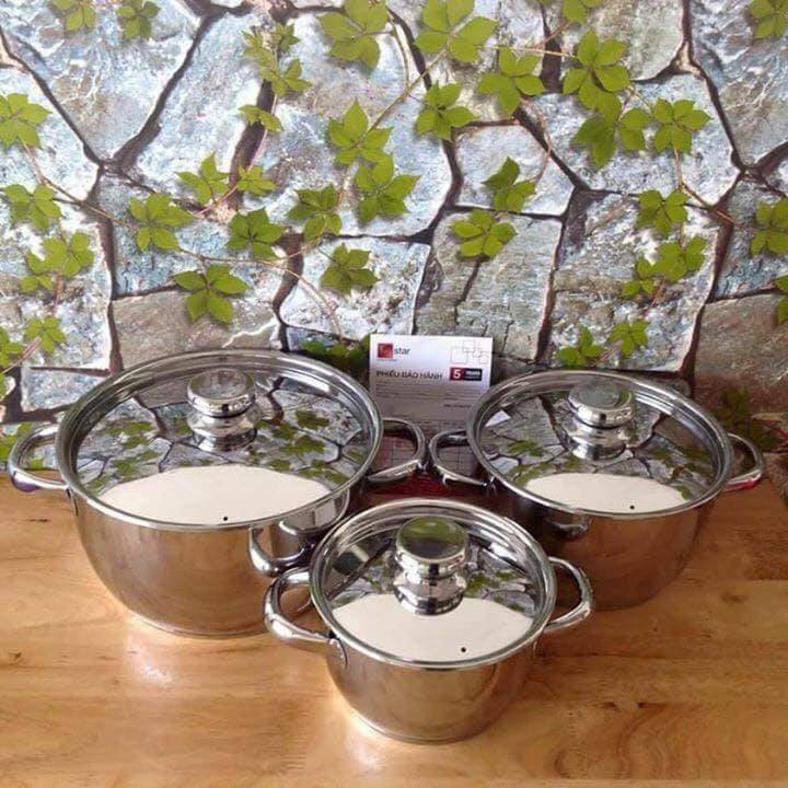 BỘ NỒI FIVESTAR 3 MÓN NẮP INOX💝💝Bộ sản phẩm gồm các đường kính sau: 16cm, 20cm, 24cm. Với nhiều kích thước khác nhau, bộ nồi FiveStar rất thuận tiện cho việc nấu các món như luộc, ninh, hầm, nấu canh .... Chất liệu inox tỏa nhiệt nhanh nên hoàn toàn không làm tốn thời gian của bạn.