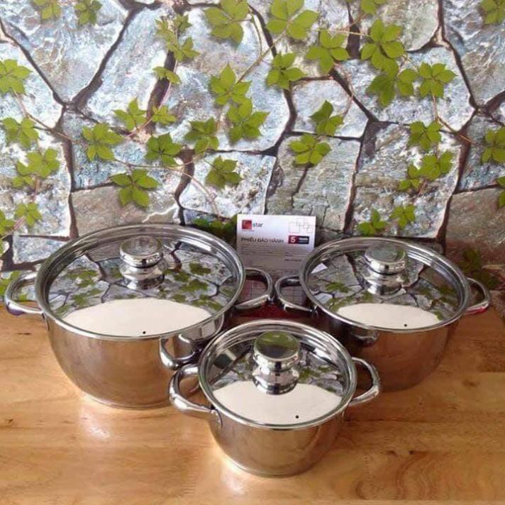 BỘ NỒI FIVESTAR 3 MÓN NẮP INOX💝💝Bộ sản phẩm gồm các đường kính sau: 16cm, 20cm, 24cm. Với nhiều kích thước khác nhau, bộ nồi FiveStar rất thuận tiện cho việc nấu các món như luộc, ninh, hầm, nấu canh .... Chất liệu inox tỏa nhiệt nhanh nên hoàn toàn không làm tốn thời gian của bạn.