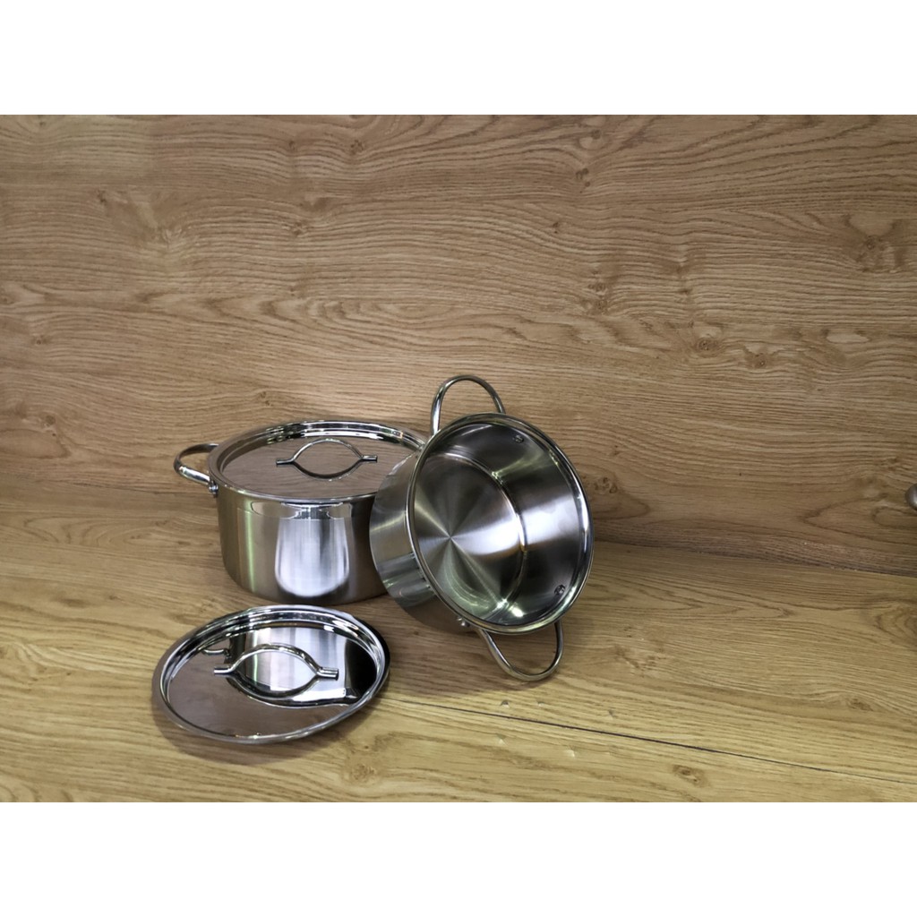 ✔️Cấu tạo 3 lớp đúc liền từ thân xuống đáy độ dầy 2,3 ly cho khả năng tỏa nhiệt nhanh và đều, tiết kiệm thời gian nấu nướng. Nắp nồi inox độ bóng BA sáng như gương.