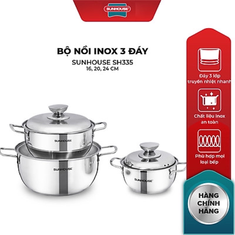 Bộ Nồi Inox 3 Đáy Sunhouse SH335