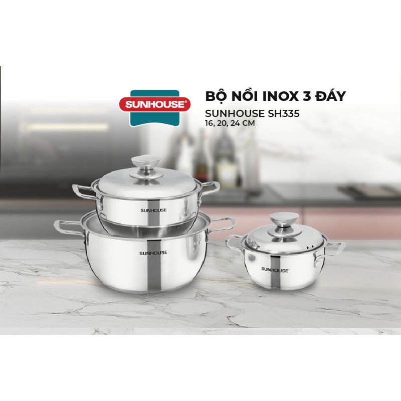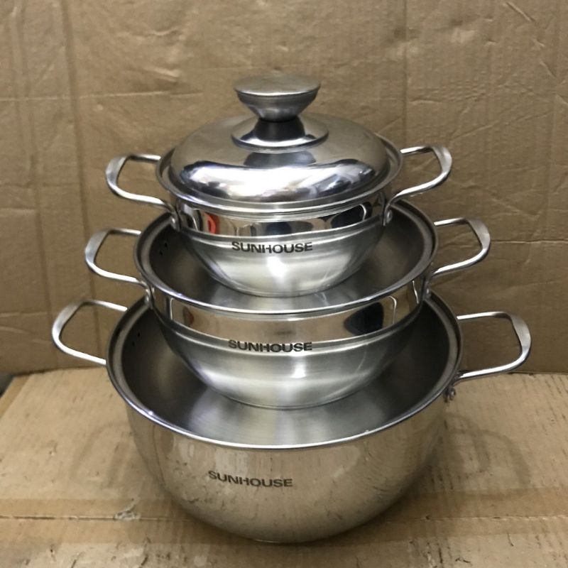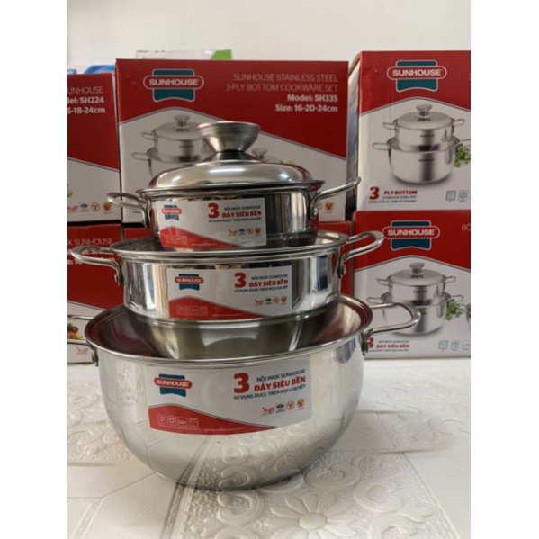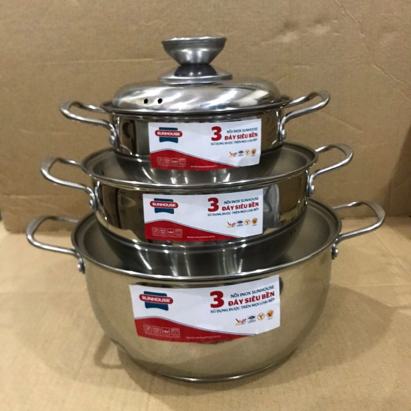 Nhà cửa & Đời sống > Dụng cụ nhà bếp > Nồi || BỘ NỒI INOX 3 đáy Sunhouse sh335 hàng chính hãng giá rẻCòn hàng