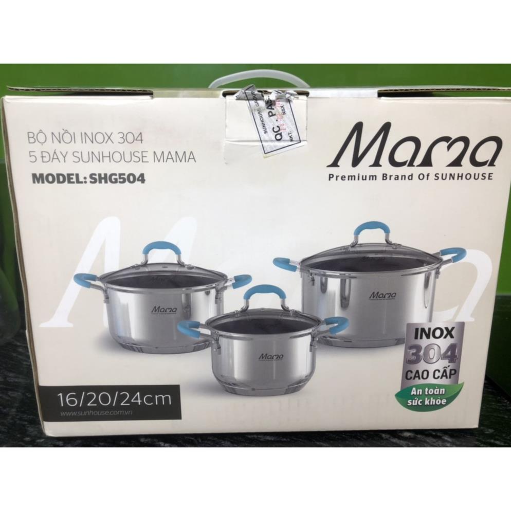 BỘ NỒI INOX 304 5 ĐÁY SUNHOUSE MAMA SHG504