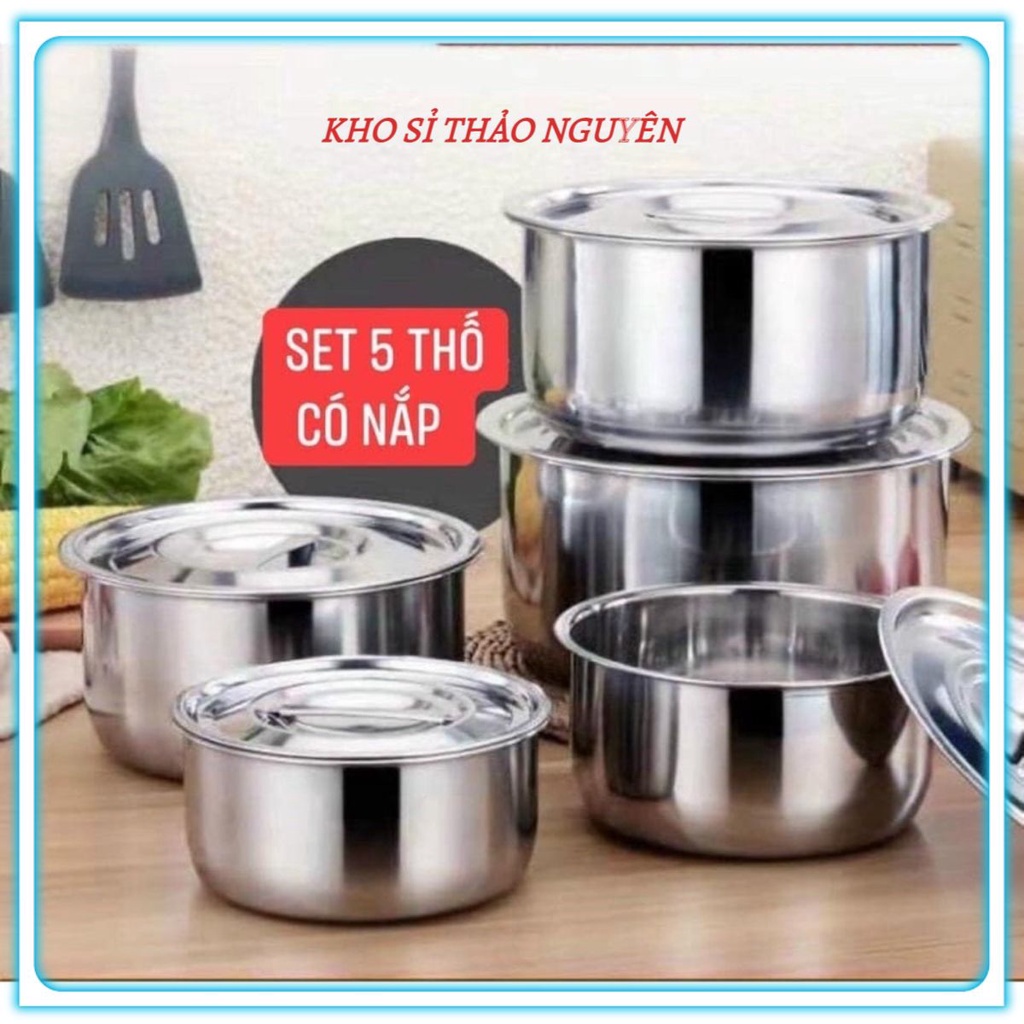 ✨ SET 5 ÂU INOX CÓ NẮP CAO CẤP TIỆN LỢI - ĐA NĂNGChỉ # KKK mà tậu về dc hẳn 1 set 5 chú lun đỉnh thực sự !!!